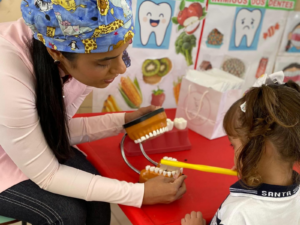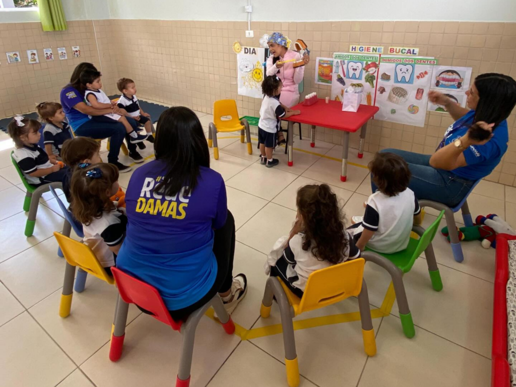 As crianças aprenderam sobre hábitos de higiene, receberam dicas para conservar um sorriso saudável e participaram de atividades lúdicas, como pintura e dinâmicas de perguntas e respostas.