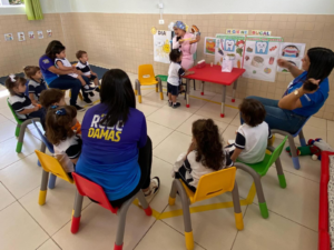 Os profissionais convidados eram familiares dos próprios estudantes mães, pais e tias, o que tornou o momento ainda mais especial e próximo da realidade dos pequenos. Essa participação ativa das famílias fortalece o vínculo entre escola e comunidade, possibilitando que os pequenos se sintam acolhidos e confiantes para compartilhar suas experiências.