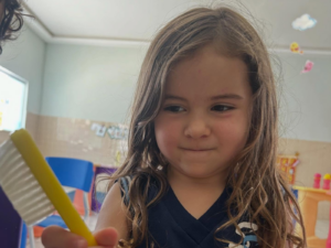 Essa presença também ajuda a despertar ainda mais interesse e curiosidade sobre a importância do cuidado com a saúde dos dentes, tornando a aprendizagem leve, significativa e cheia de afeto.