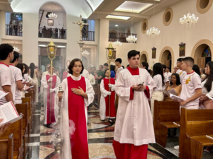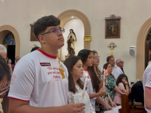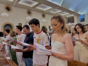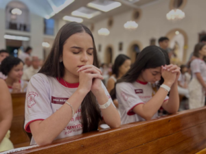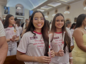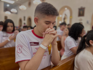 No dia anterior à celebração, os jovens vivenciaram um momento de adoração e entrega no Cenáculo, uma experiência de fé, recolhimento e abertura ao Espírito Santo, que preparou o coração de cada um para receber o sacramento.