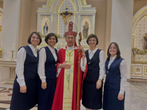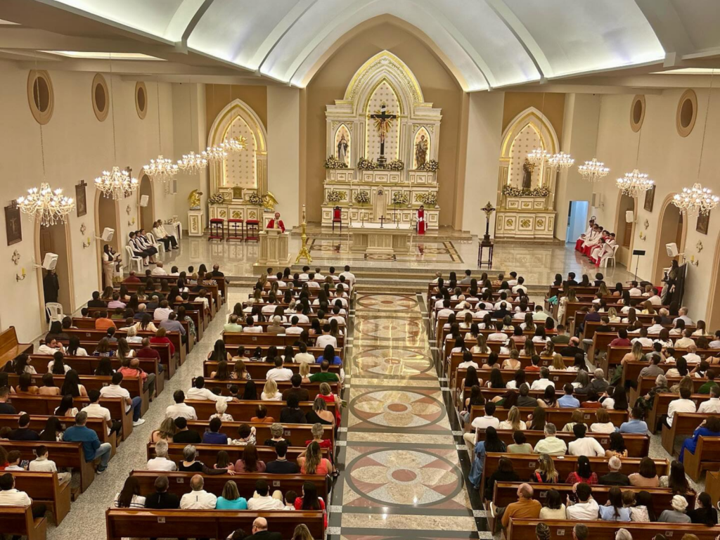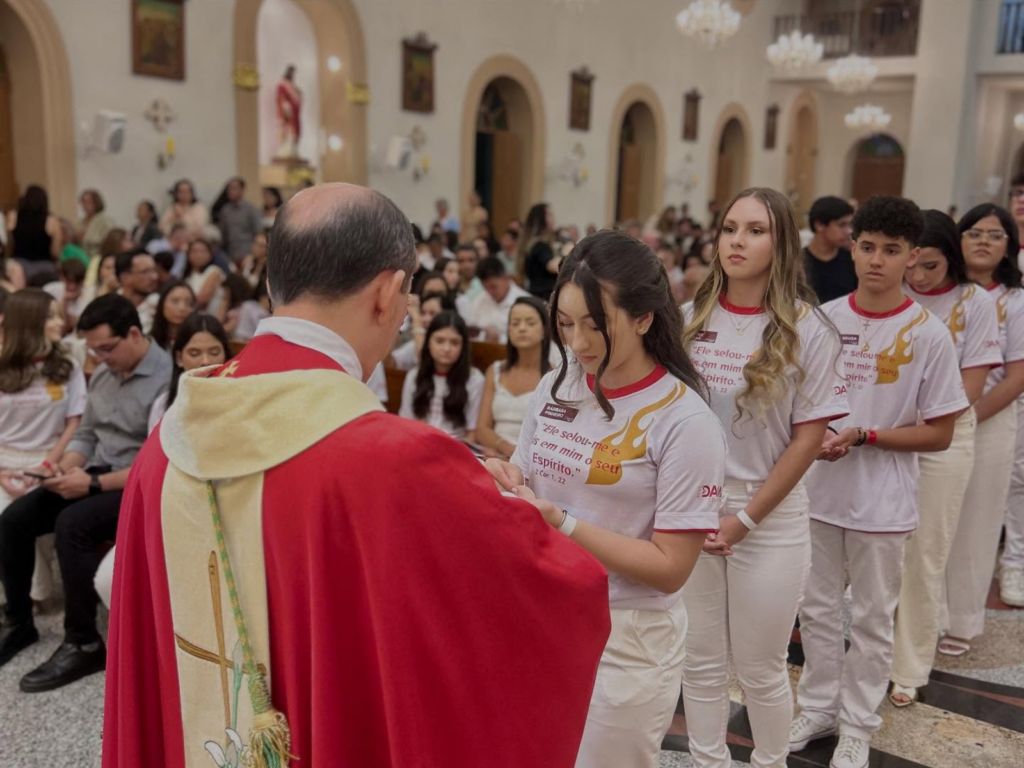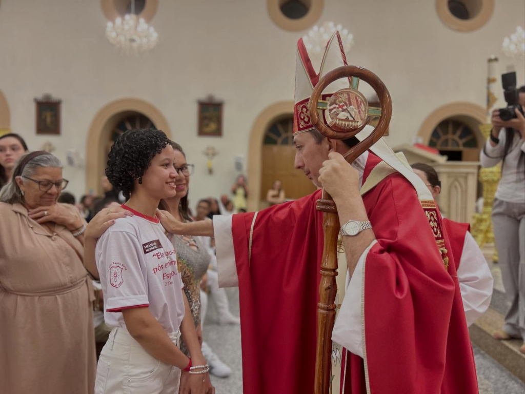 Os jovens do Colégio Santa Sofia receberam o sacramento da Crisma em uma celebração marcada pela fé, pela emoção e pela participação ativa de toda a comunidade escolar. A missa, presidida pelo bispo diocesano, Dom Agnaldo Timóteo, reuniu familiares, padrinhos e religiosas que acompanharam de perto esse momento especial na caminhada cristã dos estudantes.