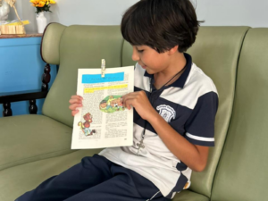 Os estudantes também apresentaram suas produções à turma, demonstrando dedicação e empenho em cada etapa. De Peter Pan a novos heróis, cada participante expressou suas ideias por meio de projetos coloridos e cheios de personalidade.